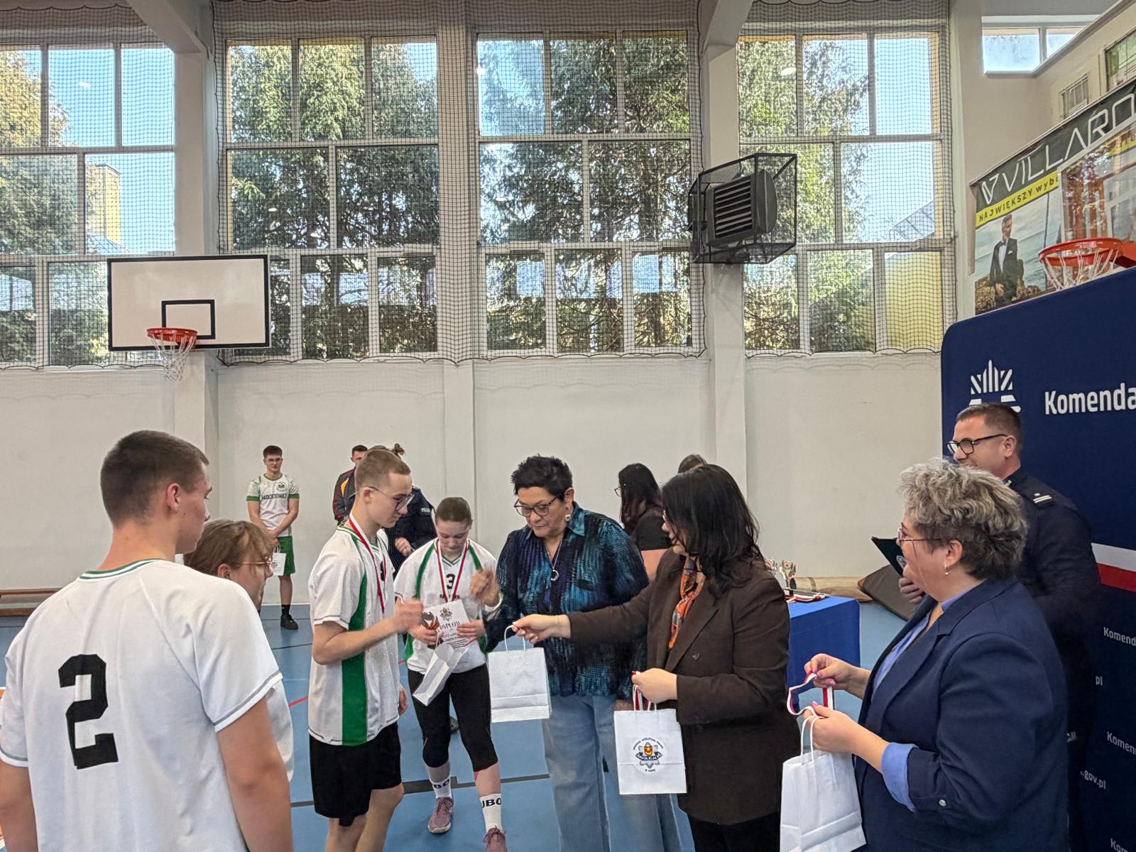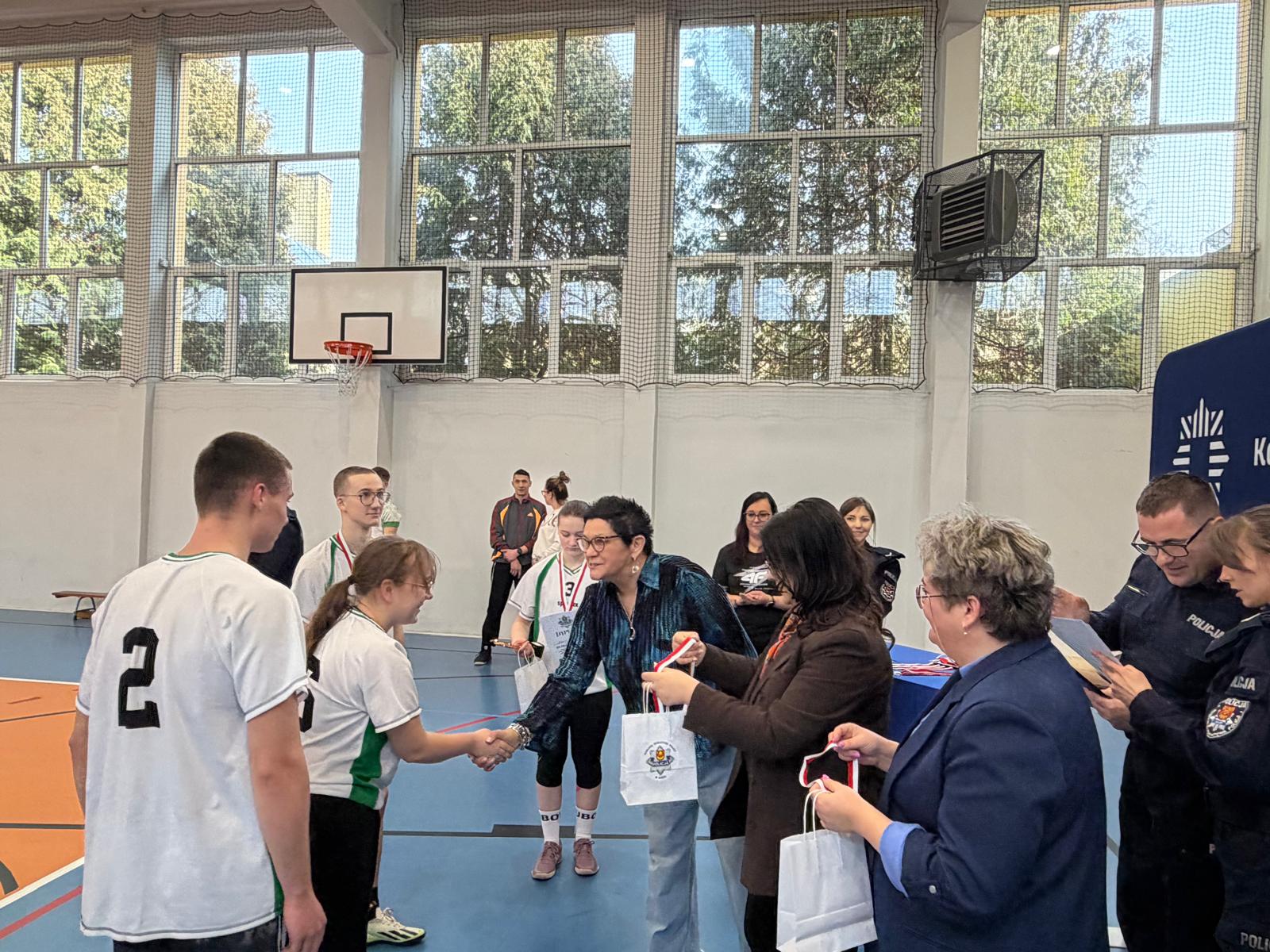 Laureatom nagrody wręczali: I Zastępca Komendanta Powiatowego Policji w Łasku podinsp. Jarosław Ryl, Etatowy Członek Zarządu Powiatu Łaskiego Teresa Wesołowska, Sekretarz Gminy Sędziejowice Sylwia Stelmach-Piątkowska oraz kierownik internatu ZSM-T w Ostrowie Aleksandra Osicka.