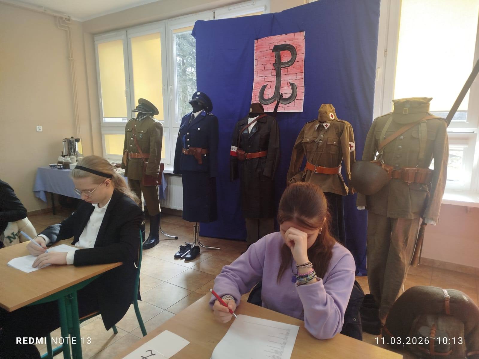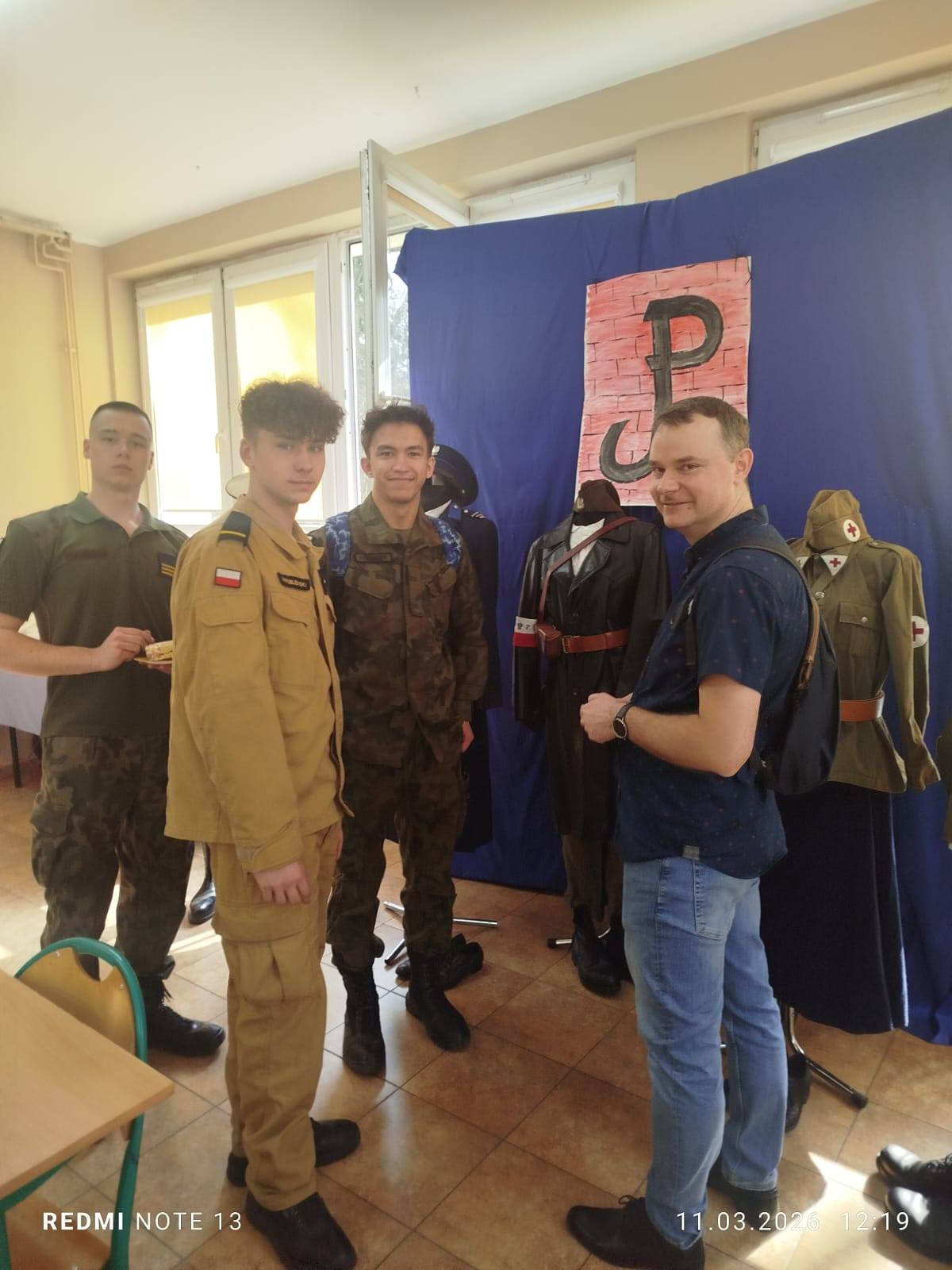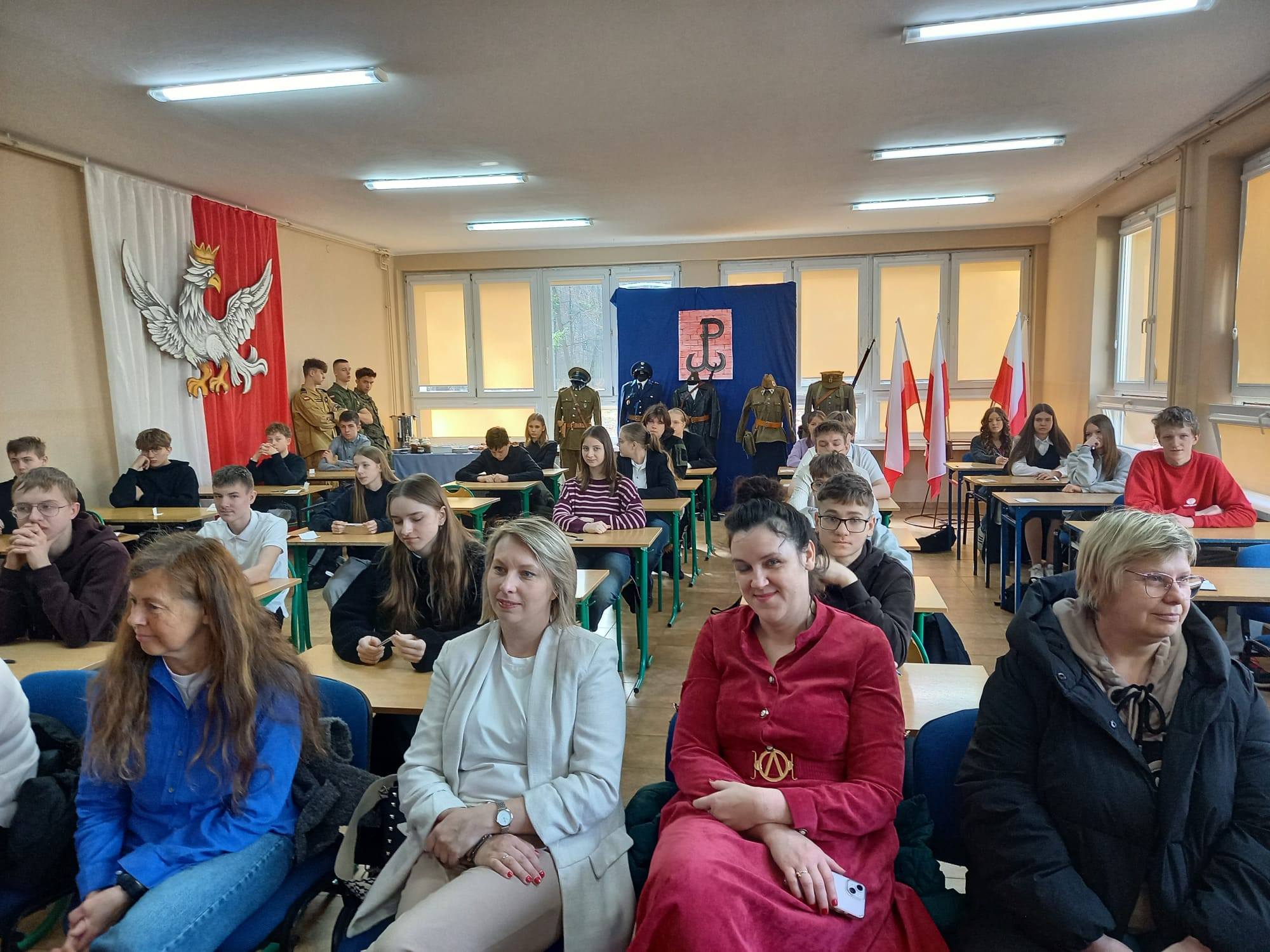Serdecznie dziękujemy Pani Edycie Wróblewskiej z grupy rekonstrukcyjnej „Gloria victis” za przygotowanie wystawy umundurowania z czasów II wojny światowej, rodzicom i uczniom klasy IIa za pomoc w przygotowanie wydarzenia oraz zapewnienie pysznego stołu kawowego.