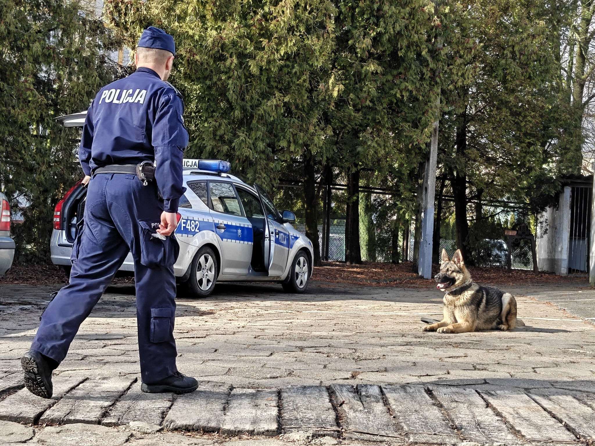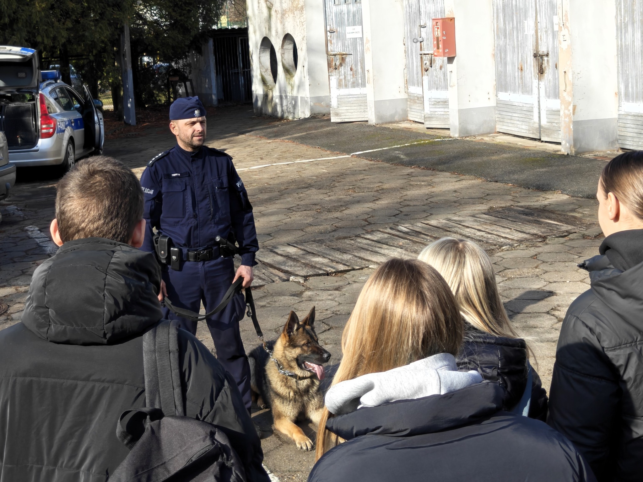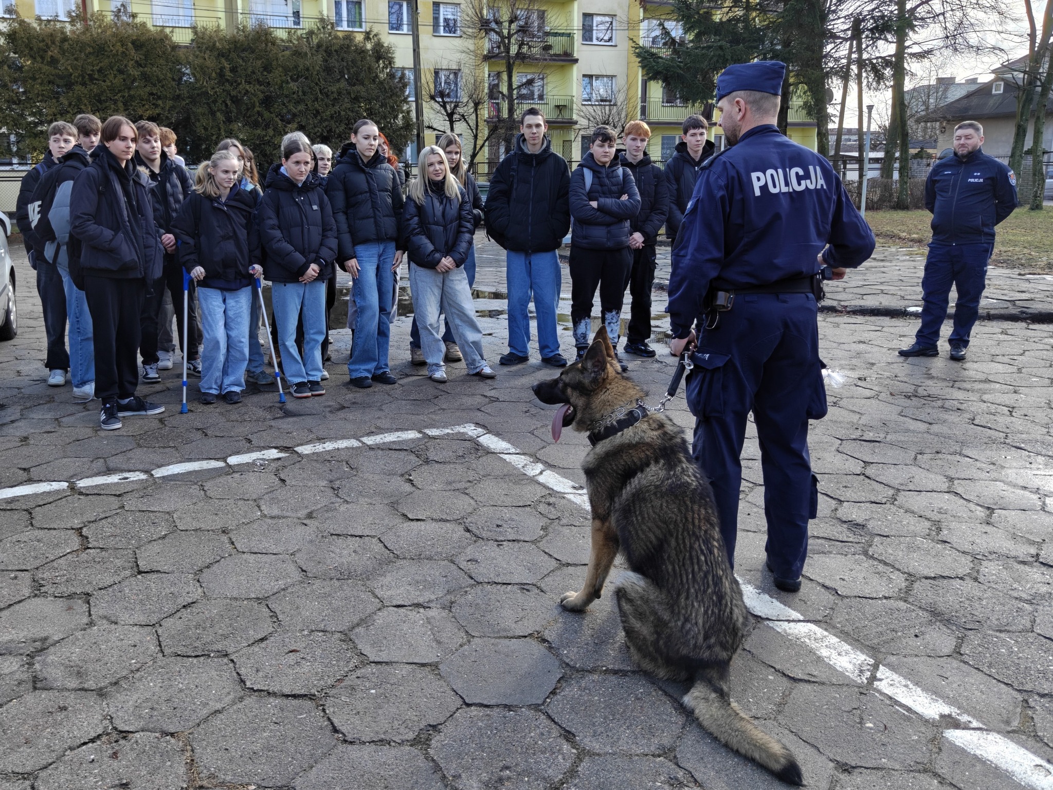 Na zakończenie uczniowie obejrzeli pokaz psa patrolowo-tropiącego. W części dynamicznej zaprezentowano elementy szkolenia obronnego z udziałem pozoranta.